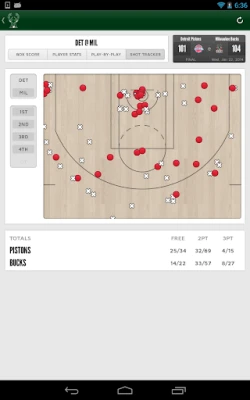 Interactive box scores with player stats, sortable play-by-play and shot tracking