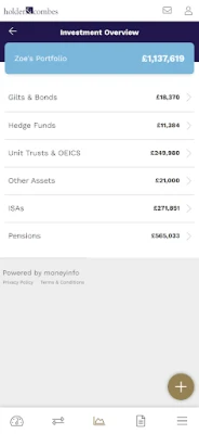 The Holder & Combes app is a service provided by Holder & Combes Ltd that gives you a complete picture of your financial life.