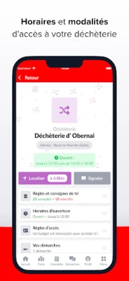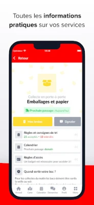 L’application Infos Déchets est l’application officielle pour vos déchets ! Elle recense toutes les informations utiles au tri et à la réduction de vos déchets, en fonction de votre adresse : calendrier de collecte, position et disponibilité des points d'apport volontaire (bornes ou conteneurs enterrés), horaires et informations pratiques sur les déchèteries, consignes de tri et bien plus encore.