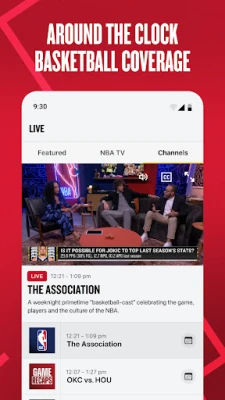 - Live channels streaming around the clock basketball coverage, highlights, studio shows, and more.